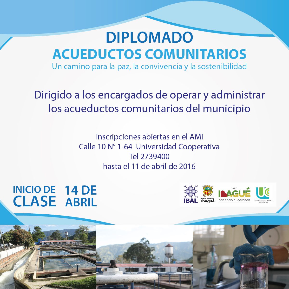 Con el objetivo de capacitar al personal encargado de operar y administrar los acueductos comunitarios, en cuanto a procesos de potabilización y calidad de agua para el consumo humano; El IBAL, la administración municipal y la Universidad Cooperativa dictarán el diplomado ‘Camino a la paz, la convivencia y la sostenibilidad’.