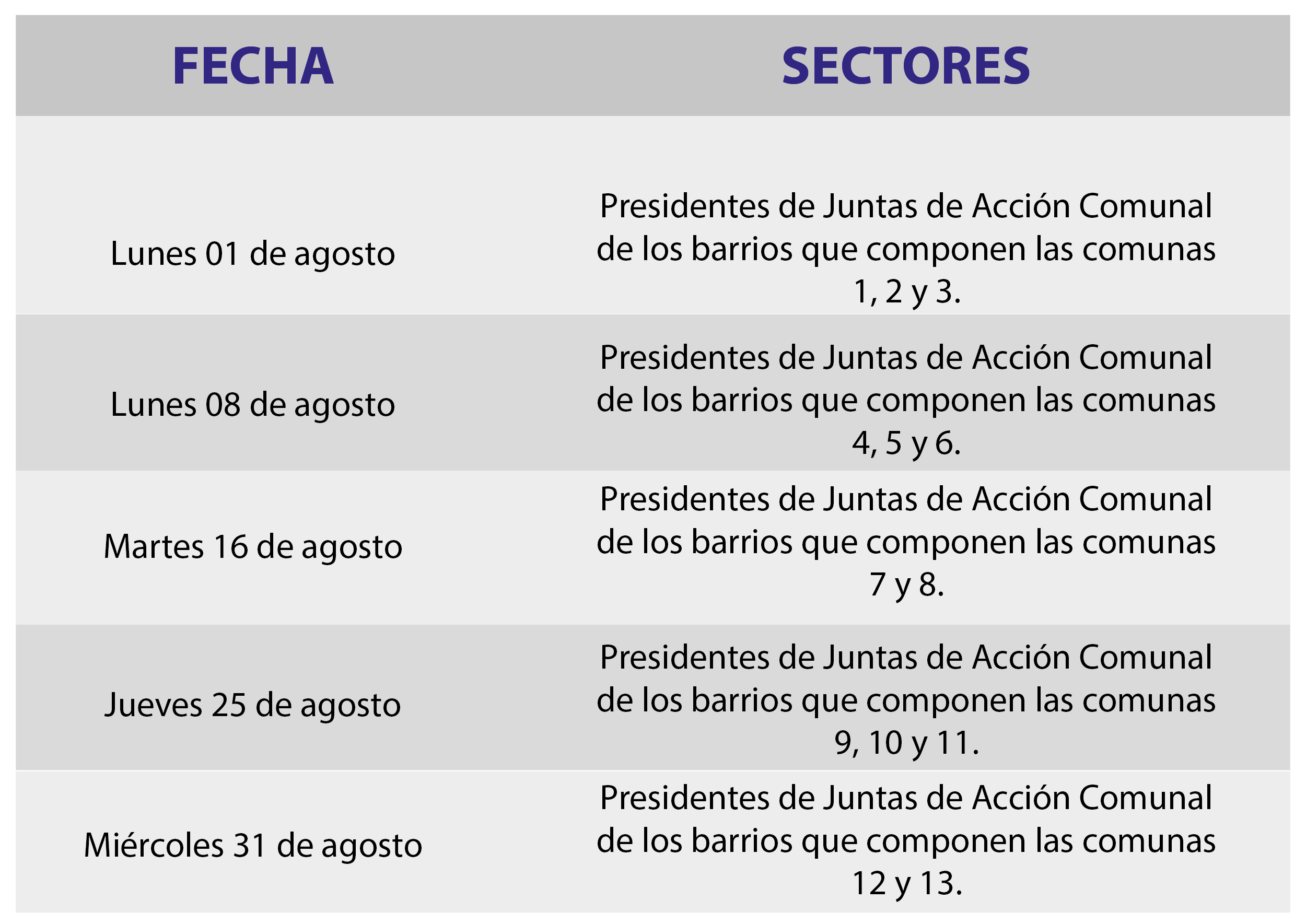 La cita es en la planta del barrio La Pola, ubicada en la carrera Tercera número 1-04. El objetivo es tratar el pago del servicio de agua potable de los salones y/o casetas comunales.