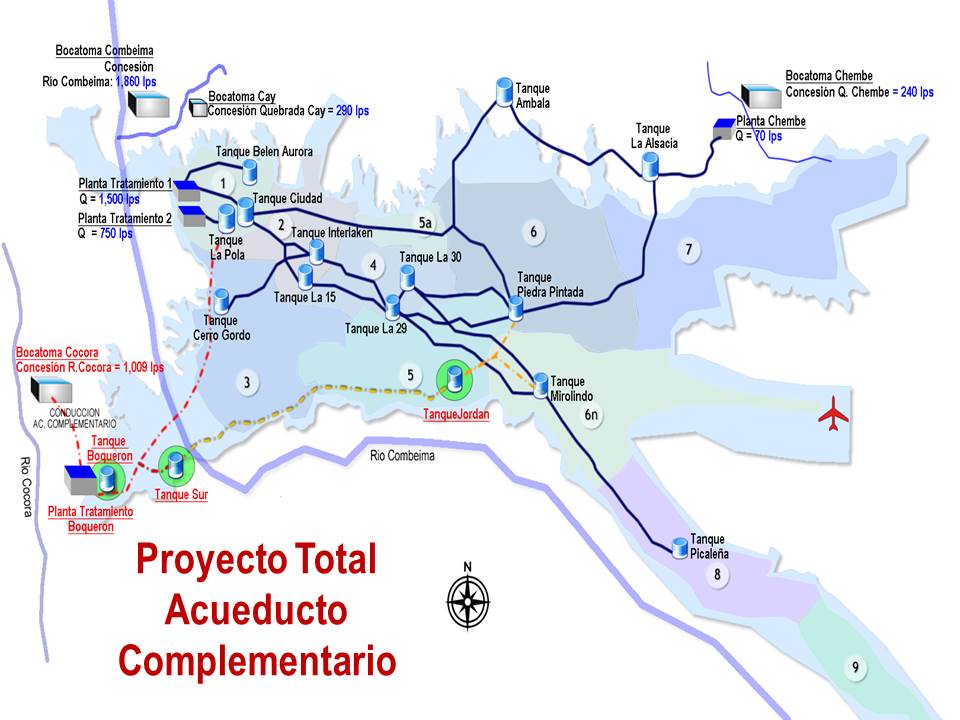 La fase uno del acueducto complementario contempla la instalación de los primeros 4,7 kilómetros de la línea de aducción; incluyendo la construcción de 5 viaductos, un túnel de 90 metros lineales y algunas obras de estabilización.