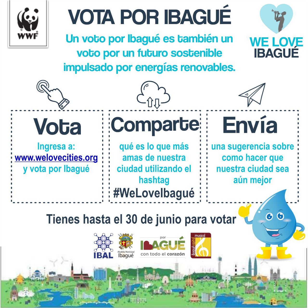 Es por esto que te invitamos a visitar la página http://welovecities.org/ibague/* y convertir a #Ibagué en la primera ciudad más sostenible del mundo.