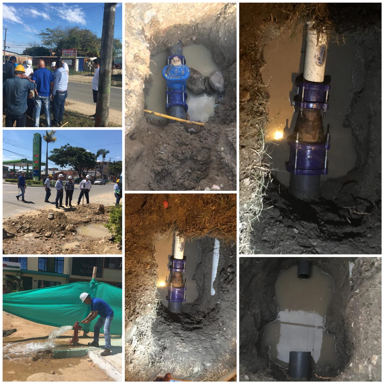 Desde el fin de semana, personal y maquinaria especializada, guiados por los ingenieros líderes del área operativa y acueducto, así como los que estaban de turno, han venido realizando diferentes tareas para asegurar la continuidad del servicio, pues en el sector de Villa de los Alpes, se presentó un taponamiento en la tubería pasando de una capacidad de 6 pulgadas a 4 pulgadas.