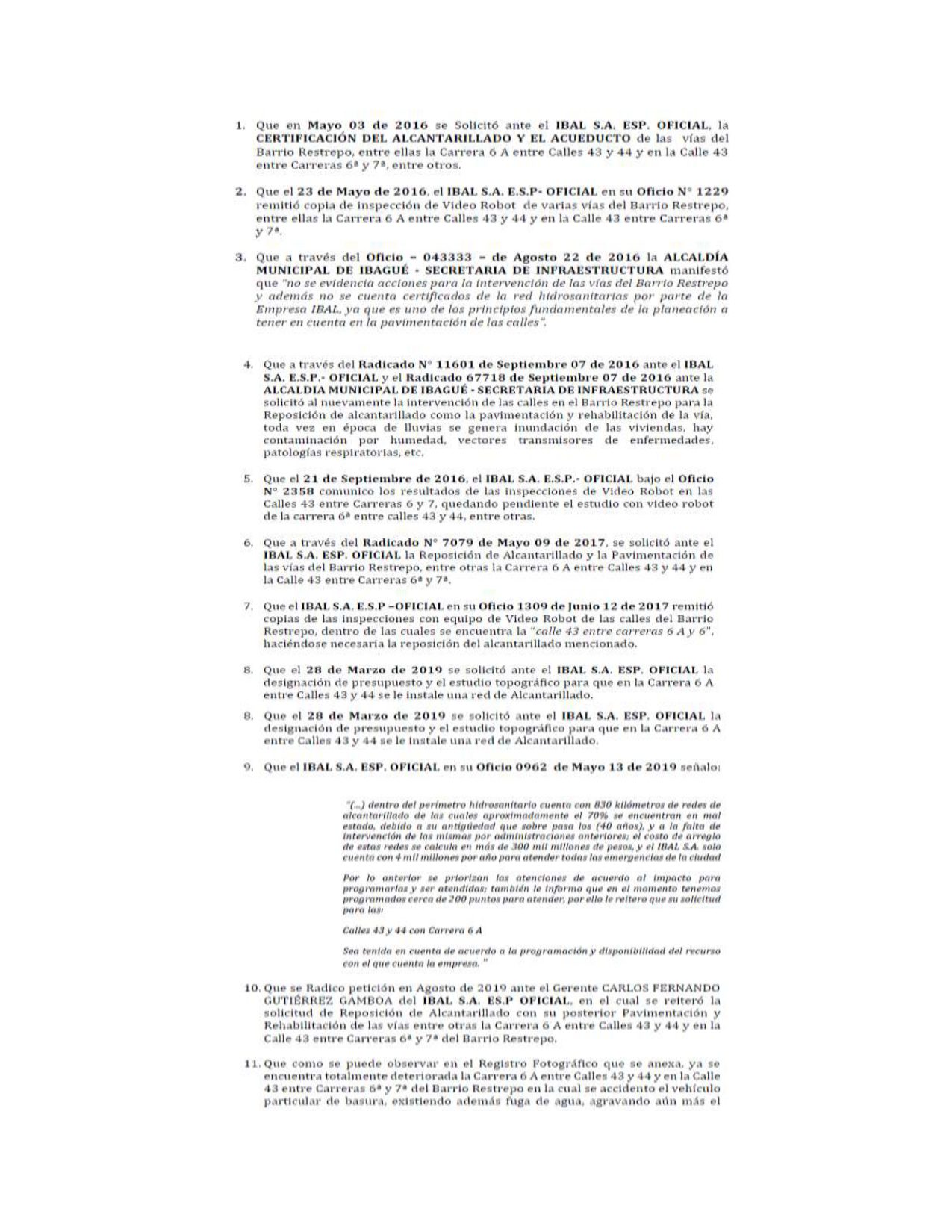 Accionados Municipio de Ibagué – Secretaria de Infraestructura y Otro