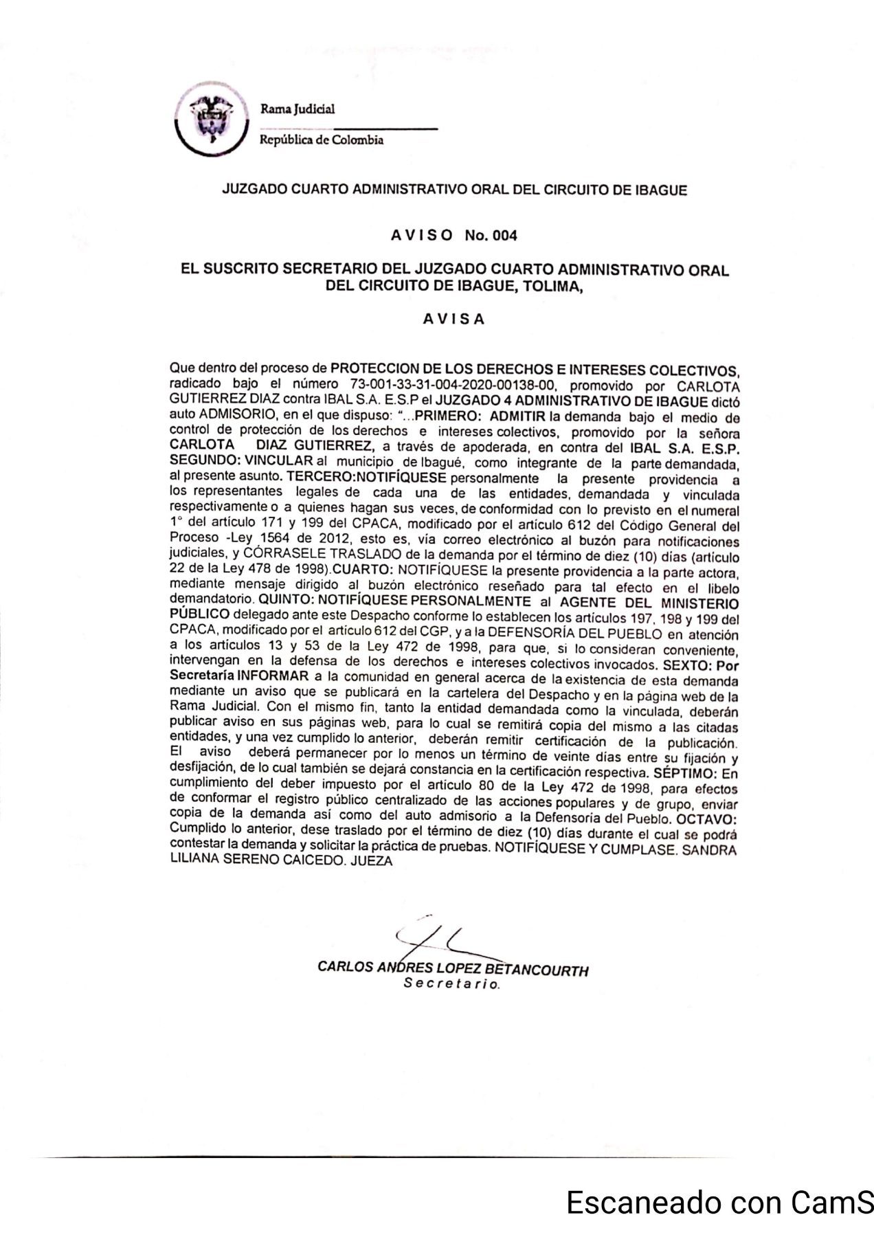 Juzgado Cuarto Administrativo Oral del Circuito de Ibaguè, Expediente 73-001-33-33-004-2020-00138-00 del 13 de mayo de 2021, Demandante: Carlota Diaz Gutiérrez, Demandado : Municipio de Ibaguè IBAL SA ESP