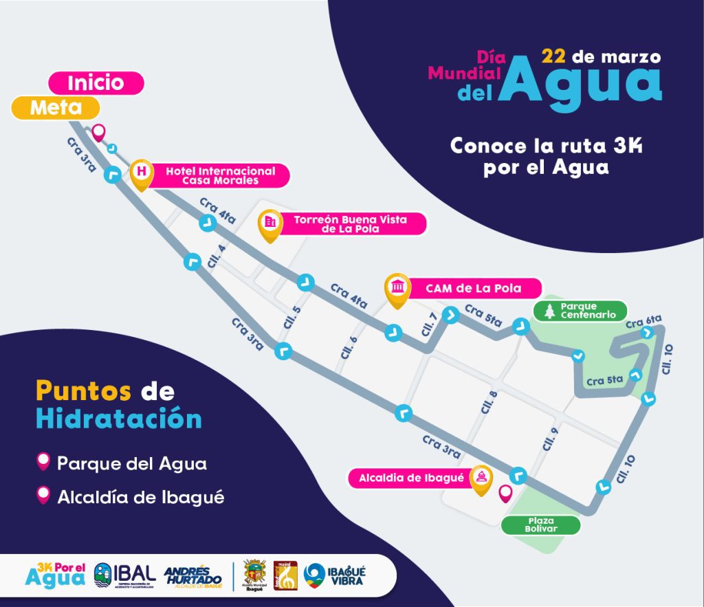 La cita tendrá lugar en el parque del Agua a partir de las 7:00 de la mañana, donde los jóvenes cumplirán una actividad atlética, recorriendo cerca de 3 kilómetros en el Centro desde el IBAL, pasando por el Parque Centenario, Alcaldía de Ibagué, y retornando al parque, para otros actos.