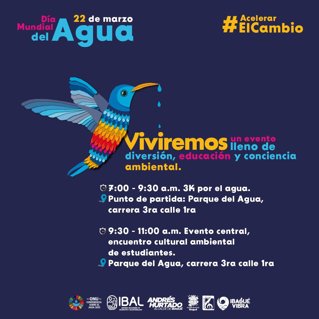 Mañana es la conmemoración del Día Mundial del Agua; por eso, desde la Empresa Ibaguereña de Acueducto y Alcantarillado, IBAL, se recuerda a los ciudadanos, que se tiene preparada toda una jornada lúdico-ambiental y deportiva, con la participación de más de 300 estudiantes de 9 colegios de la Capital Musical.