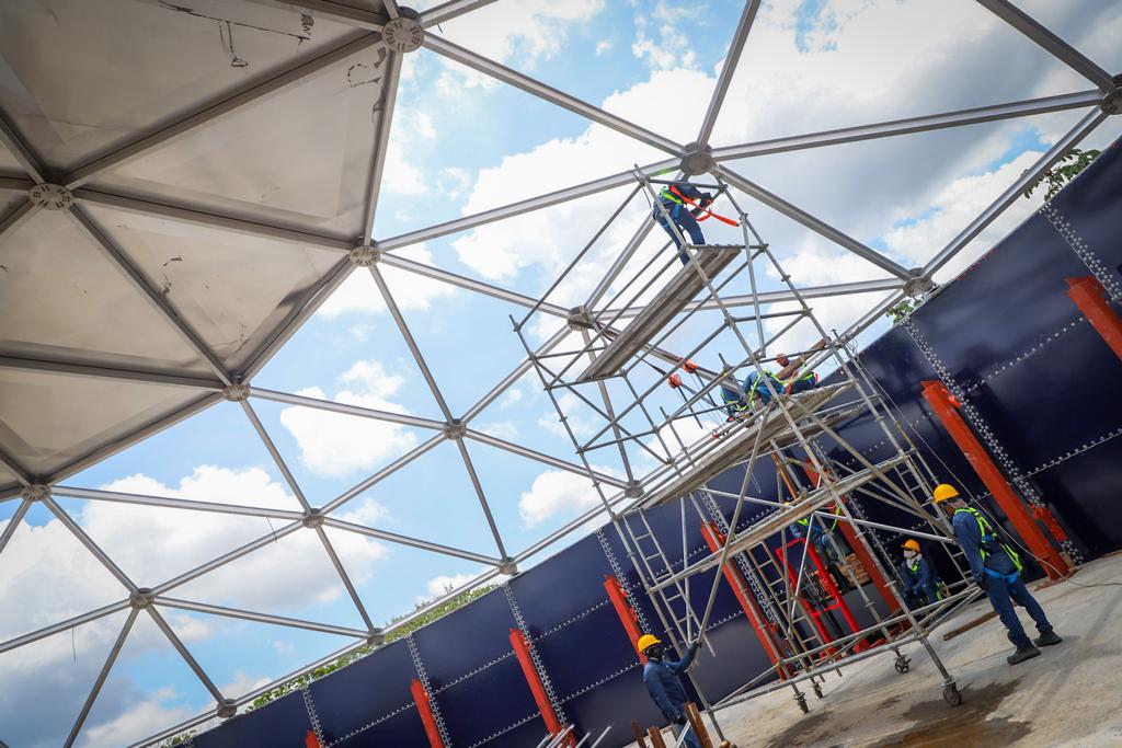Frente a los trabajos, la gerente General del IBAL, Erika Palma, mencionó que es una estructura que viene con una tecnología de vidrio fusionado al acero con un domo en aluminio de aproximadamente 6 toneladas, “que nos va a permitir entregar el proceso constructivo de este tanque de almacenamiento en la primera semana de noviembre, para el goce y disfrute de todos los ibaguereños que hoy tienen inconvenientes con la prestación del servicio”.