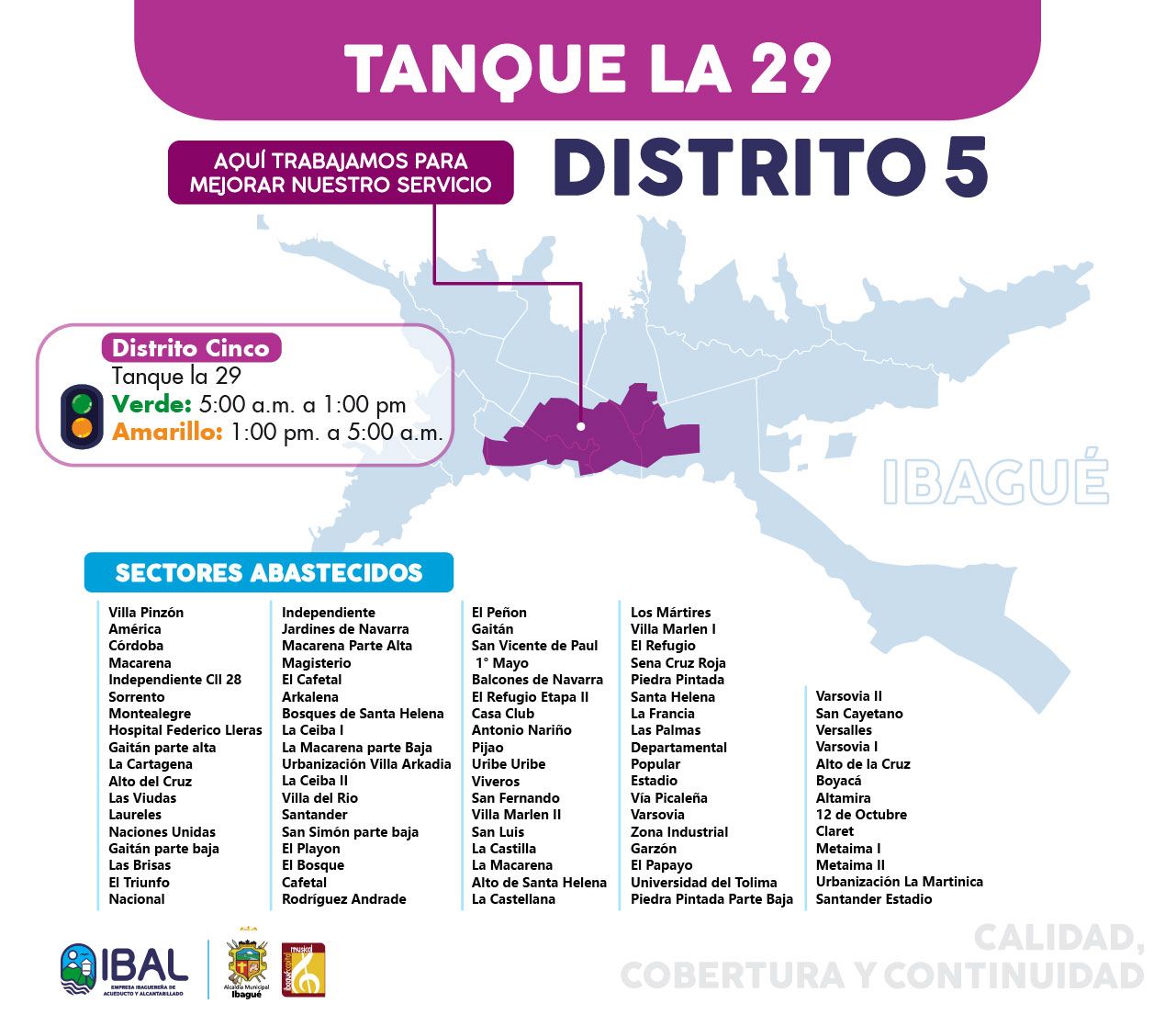 Dicha acción, que hace parte del plan de contingencia del IBAL por el Fenómeno del Niño, busca que todos los distritos hidráulicos puedan compensarse, a distintas horas, y así llevar agua a cada uno de los hogares en la ciudad. Por lo que habrá un horario especial, en el que se prestará el servicio de manera normal; y otro en el que podrá tener variación o bajas presiones.