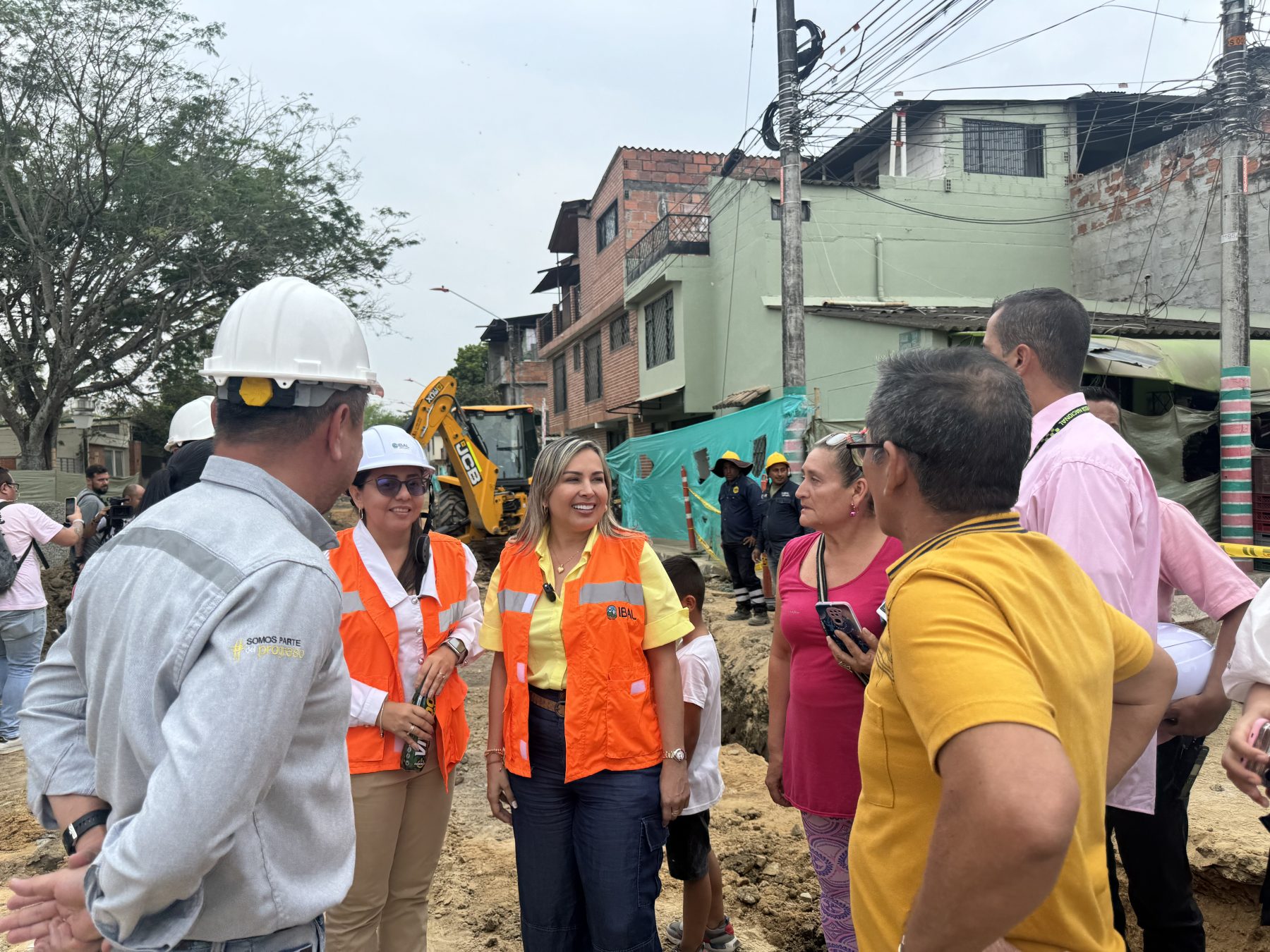 Con el casco y las botas puestas, la alcaldesa Johana Aranda recorrió las obras del ‘Combo 3×1’ del IBAL, por medio de las cuales se están modernizando las redes de acueducto y alcantarillado en más de 20 cuadras de la ciudad, y que serán pavimentadas de manera inmediata tras su intervención.