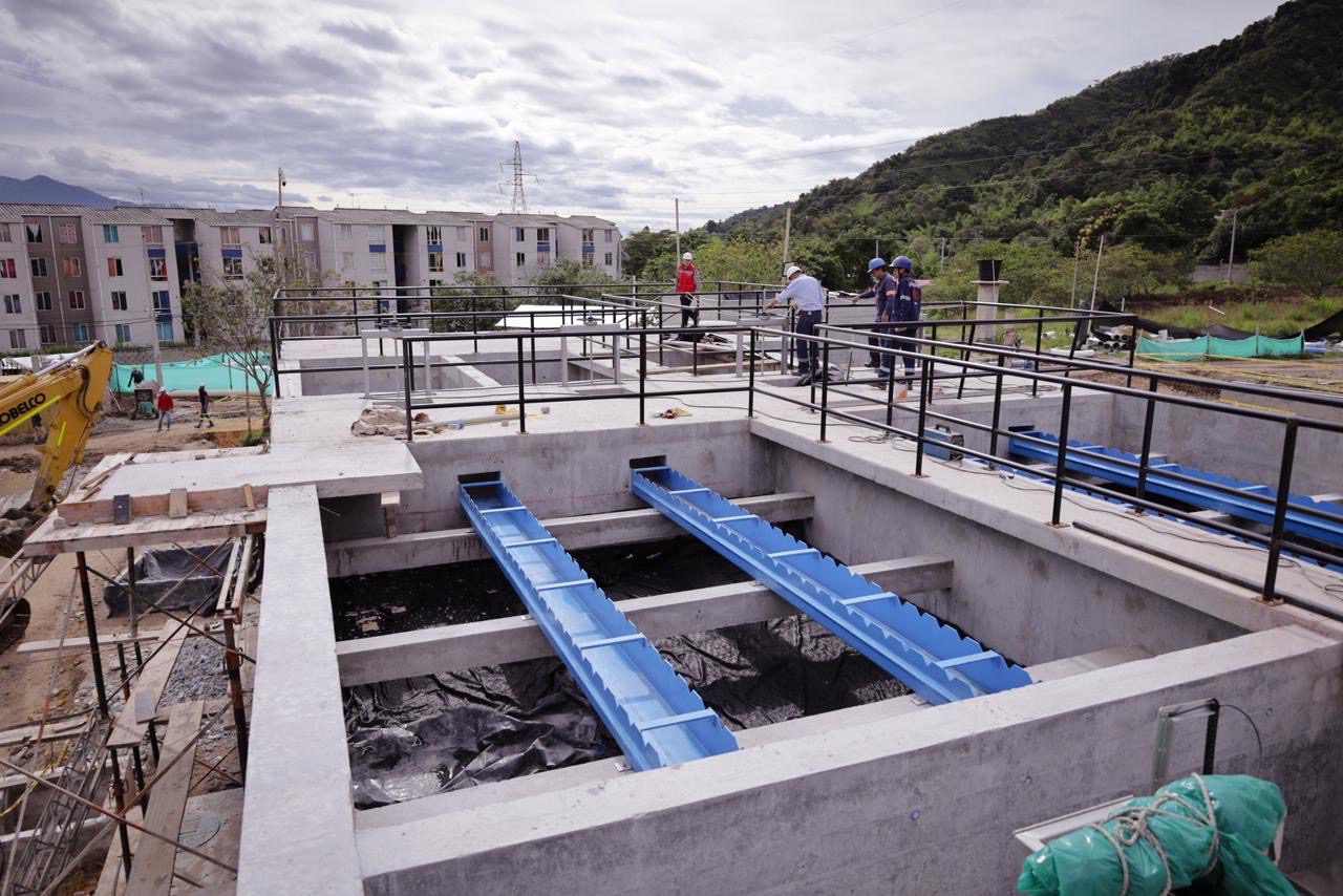 Más de 90 operarios trabajan día y noche en la construcción de la planta de tratamiento Boquerón, una infraestructura que llevará agua potable por primera vez a los barrios del Sur, donde se verán beneficiadas más de 60 mil familias de 14 acueductos comunitarios de las comunas 12 y 13.