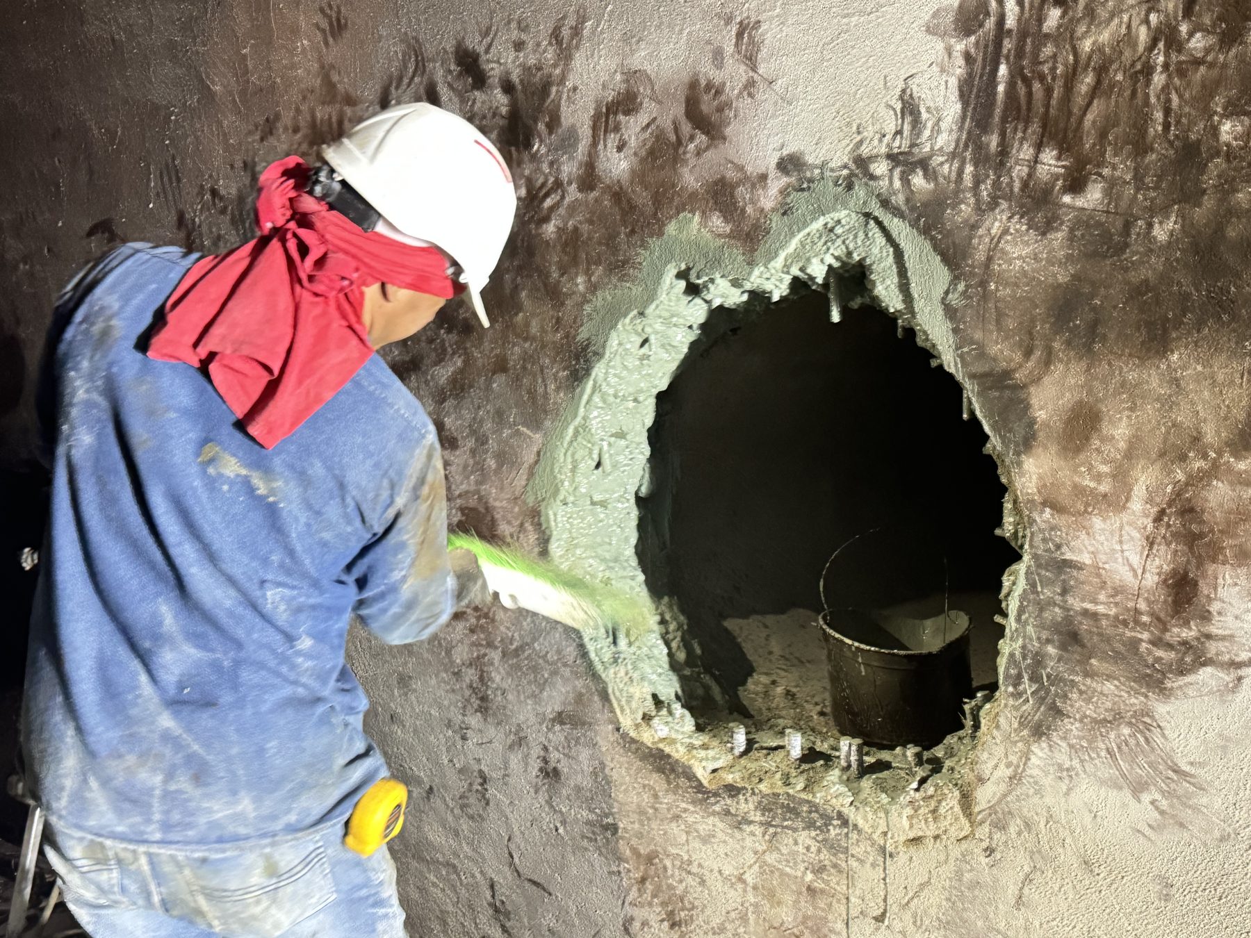A la hora, el personal está a la espera que seque el material aplicado, para iniciar las actividades de llenado en la infraestructura y de esta manera, restablecer el suministro a los usuarios de la comuna Uno y sectores aledaños.