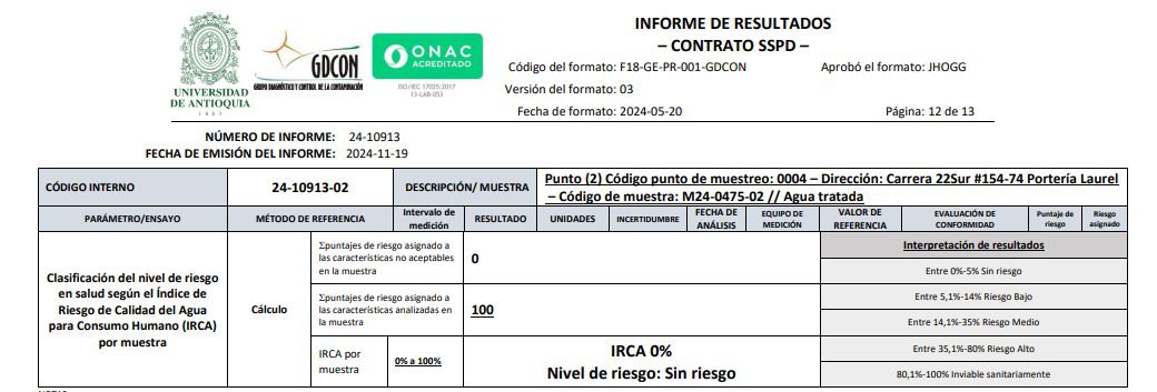 El comunicado llega en respuesta a inquietudes ciudadanas sobre el tratamiento del agua. Los resultados del análisis técnico validan que los procesos implementados en la planta cumplen con los más altos estándares de calidad, asegurando un suministro seguro para la comunidad.