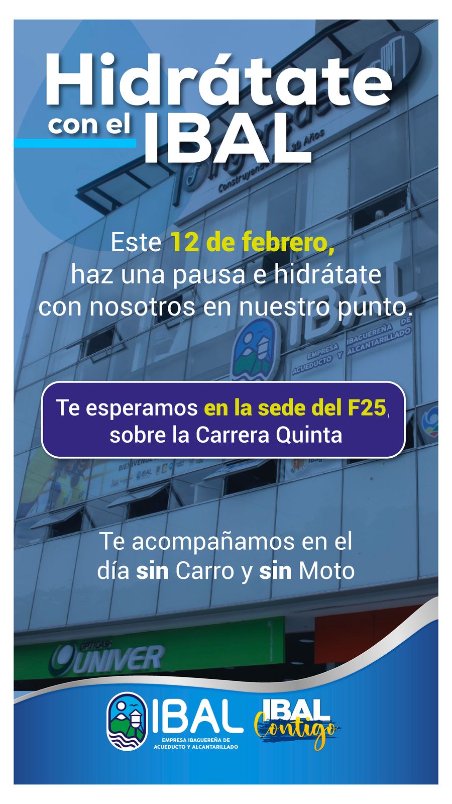 En el marco del Día sin Carro y sin Moto, la Empresa Ibaguereña de Acueducto y Alcantarillado, IBAL, se suma a esta iniciativa ambiental con la instalación de un punto de hidratación para los ciudadanos que transiten por la ciudad utilizando medios de transporte sostenibles.