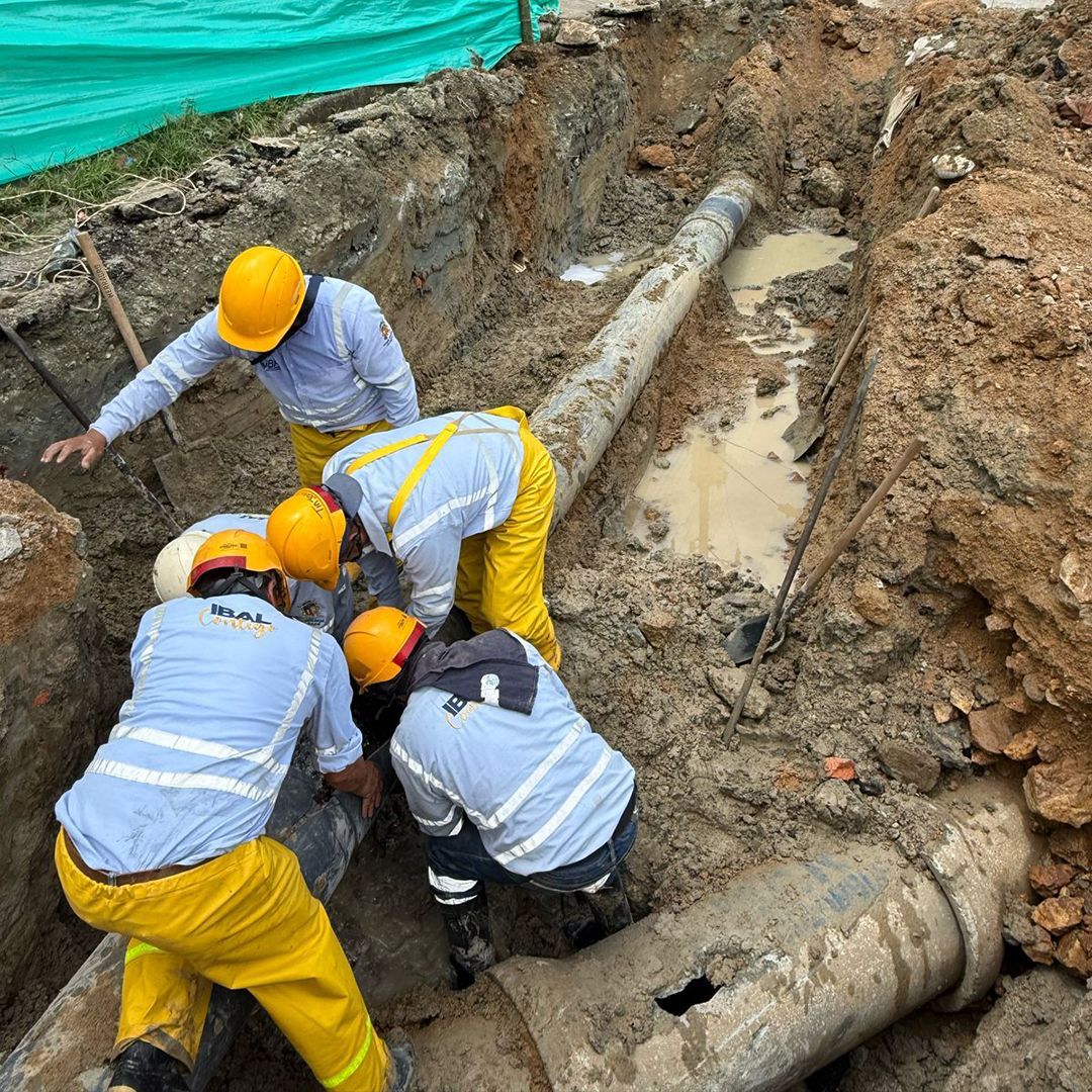 Gracias al compromiso de las cuadrillas IBALContigo, fue superado el daño de gran magnitud en la red matriz de 14 pulgadas, ubicado en el barrio Praderas del Norte, y que había sido causado por un tercero.