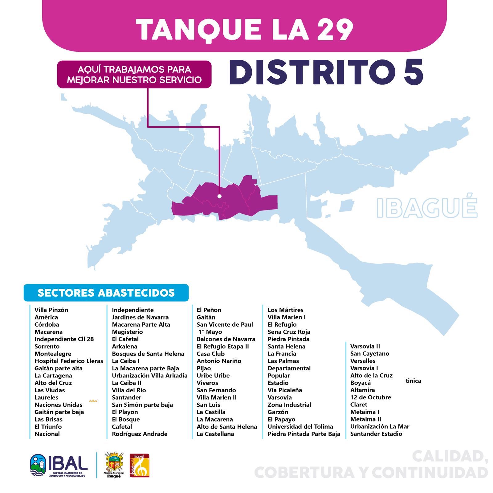 Desde la Empresa Ibaguereña de Acueducto y Alcantarillado. IBAL, se le informa a los usuarios del distrito hidráulico 5 que, debido a los trabajos de empalme del Combo 3 x1 en el barrio Restrepo, será necesario suspender temporalmente el servicio de agua potable en este sector.